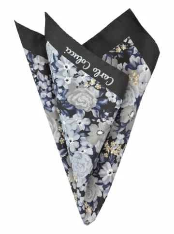 32x32cmHandrolliertGarngefärbtCARLO COLUCCI Schriftzug – Reine Seide – Toller Farbeffekt durch eine zeitlose Farbgebung in Anthrazi – Carlo Colucci Schriftzug auf der unifarbig abgesetzten Einfa – 32x32cm – Handrolliert – Garngefärbt – CARLO COLUCCI Schriftzug