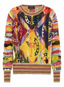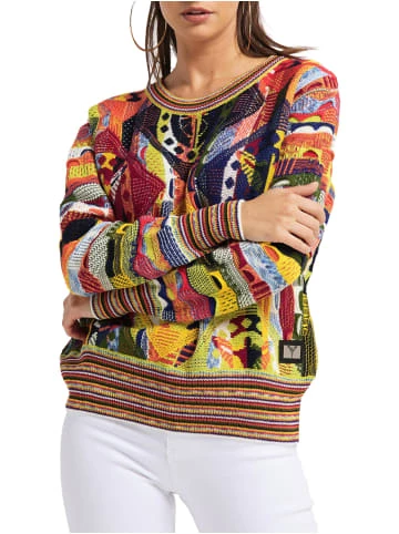 Farbenfrohes StrickmusterLogoemblem am SaumHochwertigste GarneOversize – weiter geschnitten – Rundhalsausschnitt – Rippbündchen mit Kontraststreifen an Kragen, Ärmeln und Saum – In Italien unter Verwendung hochwertigster Garne herstellt – Comfort Fit – Farbenfrohes Strickmuster – Logoemblem am Saum – Hochwertigste Garne – Oversize – weiter geschnitten