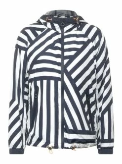 Bei Wind und Wetter! Der Damen Windbreaker von CECIL zeigt sich alltagstauglich mit Kapuze, Raglanaermeln und praktischen Zippertaschen. Der Streifenprint macht ihn zum tollen Hingucker. Der durchgehende Reissverschluss laesst sich hoch schliessen. Der Gummizug im Kragen und im Saum bringt den Windbreaker in Form. Windbreaker Zippertaschen Kapuze Gummizug Masse bei EU-Groesse M ca.: Laenge 68 cm, Brust 120 cm, Saumweite 122 cm Material: 100% Polyester – bewährte Cecil Qualität – gute Passform – hoher Tragekomfort