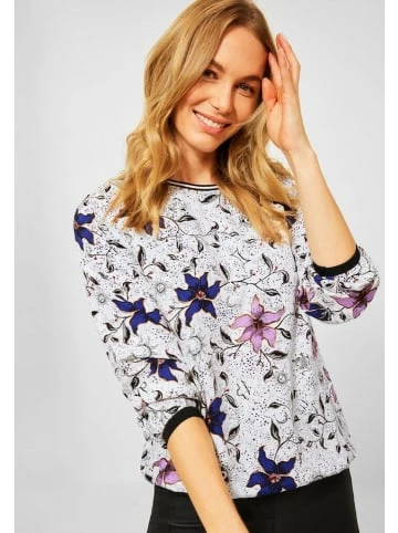 Flower Power! Laessige Bluse von CECIL mit modischem Blumen Print und klassischem Rundhalsausschnitt. College Streifen setzen am Kragen tolle Akzente. In softer Viskose fuehlt sich die Bluse angenehm weich an und der Gummizug in Saum und Ärmelbuendchen sorgt fuer Tragekomfort. Bluse Blumen Print College Streifen Masse bei EU-Groesse M ca.: Laenge 67 cm, Brust 109 cm, Saumweite 116 cm Material: 100% Viskose – bewährte Cecil Qualität – gute Passform – hoher Tragekomfort