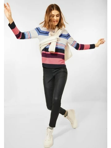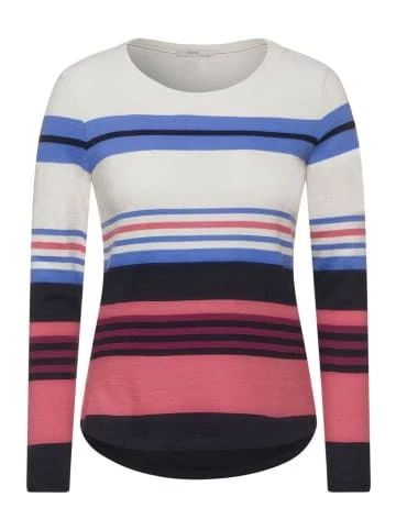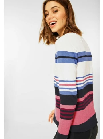 All-time favorit! Mit dem Damen Langarmshirt von CECIL ist man immer gut gekleidet. Das Multicolor Streifenmuster zeigt sich in froehlichen Farben. Der klassische Rundhalsausschnitt und der abgerundete Saum ergaenzen den Look gekonnt. Shirt Streifenmuster Rundhalsausschnitt Masse bei EU-Groesse M ca.: Laenge 67 cm, Brust 106 cm, Saumweite 106 cm Material: 100% Baumwolle – bewährte Cecil Qualität – gute Passform – hoher Tragekomfort