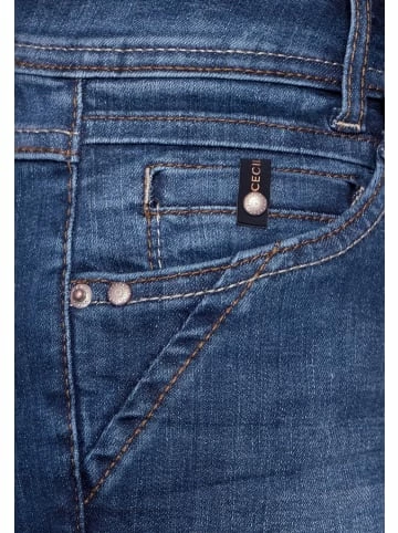 Perfect Denim! Slim Fit Damen Jeans von CECIL im Style Toronto. In High Waist und mit Slim Legs zaubert sie eine tolle Silhouette. Die dunkelblaue Waschung ist ein Allroundtalent und lässt sich vielseitig kombinieren. Die Kombi aus Reißverschluss und den beiden Knöpfen verleiht der Jeans im klassischen 5-Pocket Style eine besondere Note.Slim FitHigh Waist, Slim LegsDunkelblaue WaschungReißverschluss mit zwei KnöpfenMaße bei Inch-Größe 28/32 ca.:Innenbeinlänge 81 cm, Fussweite 16 cmMaterial: 85% Baumwolle, 12% Polyester, 3% Elasthan