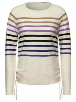 Stripes are everywhere! Das moderne Multicolor Streifen Muster macht den Damen Pullover von CECIL zum Fashion-Allrounder, der in keinem Kleiderschrank fehlen darf. Raglanaermel und Rundhalsausschnitt verleihen ihm eine sportliche Note. Besonderer Hingucker sind die Tunnelzugbaender im Saum, die sich raffiniert raffen lassen. Pullover Streifen Muster Raglanaermel Masse bei EU-Groesse M ca.: Laenge 64 cm, Brust 106 cm, Saumweite 108 cm Material: 100% Baumwolle – bewährte Cecil Qualität – gute Passform – hoher Tragekomfort